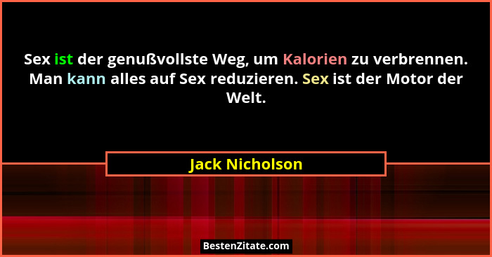 Sex ist der genußvollste Weg, um Kalorien zu verbrennen. Man kann alles auf Sex reduzieren. Sex ist der Motor der Welt.