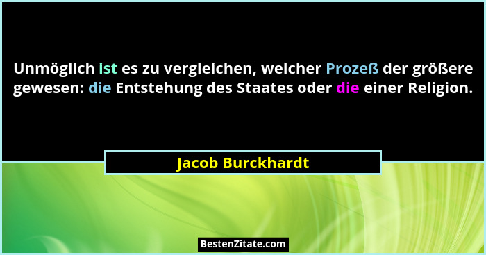 Unmöglich ist es zu vergleichen, welcher Prozeß der größere gewesen: die Entstehung des Staates oder die einer Religion.