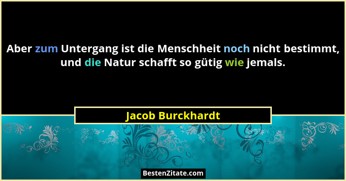 Aber zum Untergang ist die Menschheit noch nicht bestimmt, und die Natur schafft so gütig wie jemals.