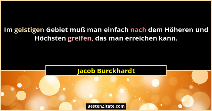 Im geistigen Gebiet muß man einfach nach dem Höheren und Höchsten greifen, das man erreichen kann.