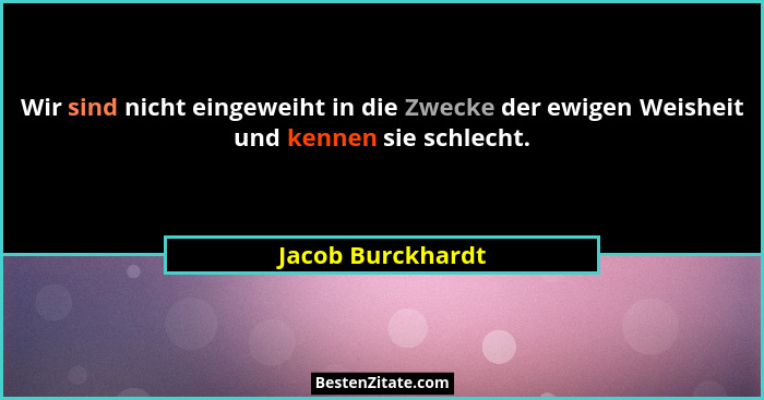 Wir sind nicht eingeweiht in die Zwecke der ewigen Weisheit und kennen sie schlecht.