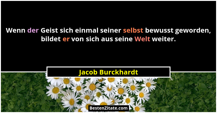 Wenn der Geist sich einmal seiner selbst bewusst geworden, bildet er von sich aus seine Welt weiter.