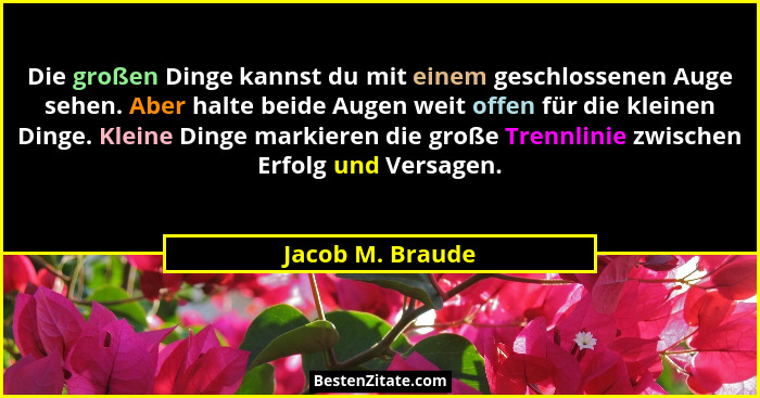 Die großen Dinge kannst du mit einem geschlossenen Auge sehen. Aber halte beide Augen weit offen für die kleinen Dinge. Kleine Dinge markieren die große Trennlinie zwischen Erfolg und Versagen.