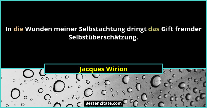 In die Wunden meiner Selbstachtung dringt das Gift fremder Selbstüberschätzung.