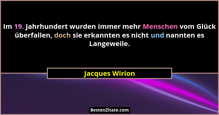 Im 19. Jahrhundert wurden immer mehr Menschen vom Glück überfallen, doch sie erkannten es nicht und nannten es Langeweile.