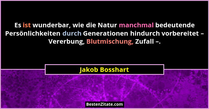 Es ist wunderbar, wie die Natur manchmal bedeutende Persönlichkeiten durch Generationen hindurch vorbereitet – Vererbung, Blutmischung, Zufall –.