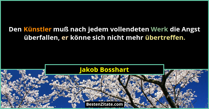 Den Künstler muß nach jedem vollendeten Werk die Angst überfallen, er könne sich nicht mehr übertreffen.