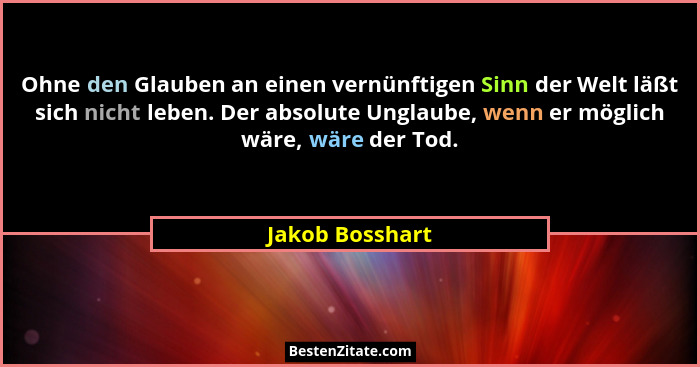 Ohne den Glauben an einen vernünftigen Sinn der Welt läßt sich nicht leben. Der absolute Unglaube, wenn er möglich wäre, wäre der Tod.
