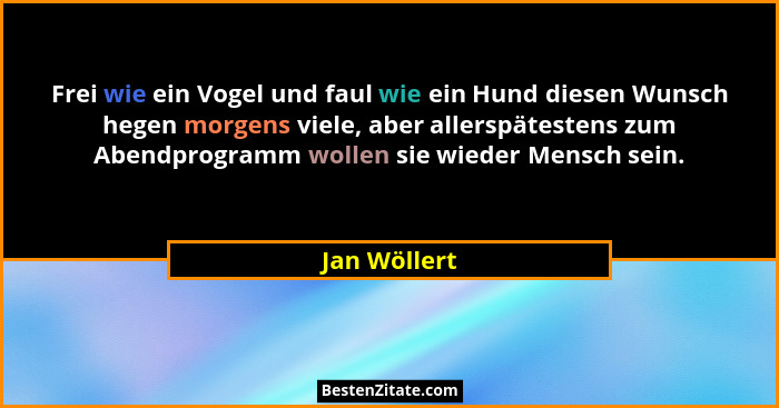 Frei wie ein Vogel und faul wie ein Hund diesen Wunsch hegen morgens viele, aber allerspätestens zum Abendprogramm wollen sie wieder Mensch sein.