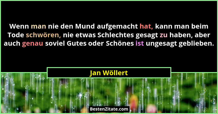 Wenn man nie den Mund aufgemacht hat, kann man beim Tode schwören, nie etwas Schlechtes gesagt zu haben, aber auch genau soviel Gutes oder Schönes ist ungesagt geblieben.