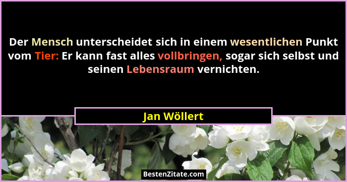 Der Mensch unterscheidet sich in einem wesentlichen Punkt vom Tier: Er kann fast alles vollbringen, sogar sich selbst und seinen Lebensraum vernichten.