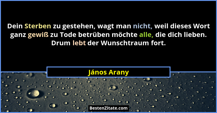 Dein Sterben zu gestehen, wagt man nicht, weil dieses Wort ganz gewiß zu Tode betrüben möchte alle, die dich lieben. Drum lebt der Wunschtraum fort.