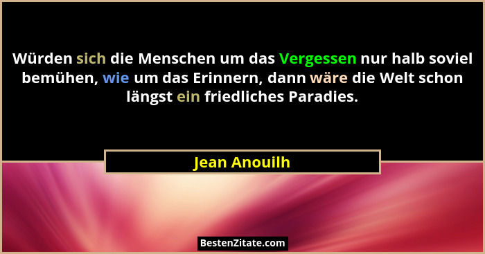 Würden sich die Menschen um das Vergessen nur halb soviel bemühen, wie um das Erinnern, dann wäre die Welt schon längst ein friedliches Paradies.