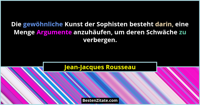 Die gewöhnliche Kunst der Sophisten besteht darin, eine Menge Argumente anzuhäufen, um deren Schwäche zu verbergen.