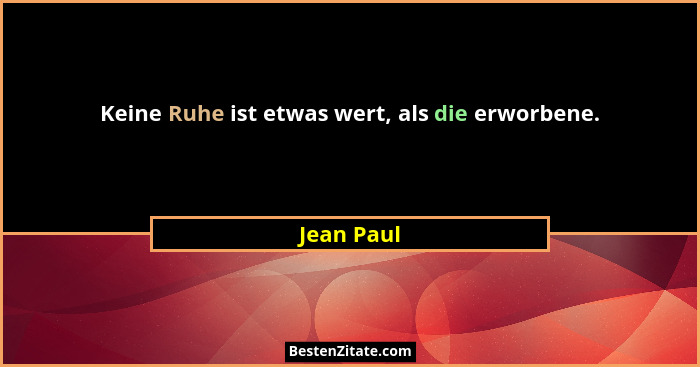 Keine Ruhe ist etwas wert, als die erworbene.