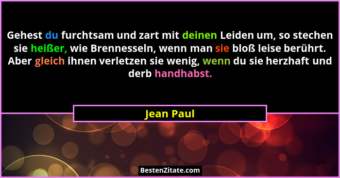 Gehest du furchtsam und zart mit deinen Leiden um, so stechen sie heißer, wie Brennesseln, wenn man sie bloß leise berührt. Aber gleich ihnen verletzen sie wenig, wenn du sie herzhaft und derb handhabst.