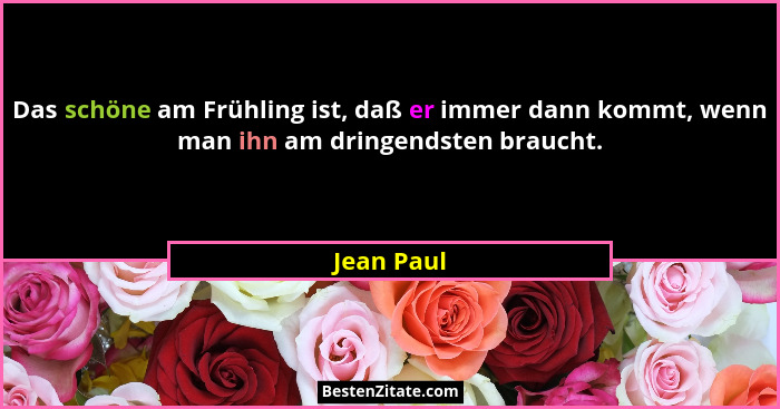 Das schöne am Frühling ist, daß er immer dann kommt, wenn man ihn am dringendsten braucht.