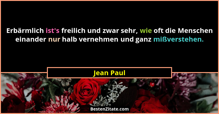 Erbärmlich ist's freilich und zwar sehr, wie oft die Menschen einander nur halb vernehmen und ganz mißverstehen.