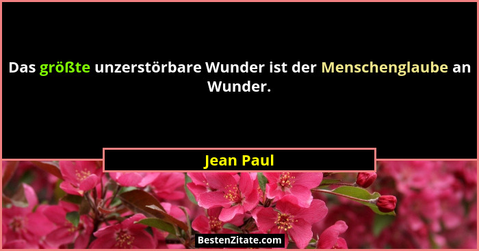 Das größte unzerstörbare Wunder ist der Menschenglaube an Wunder.