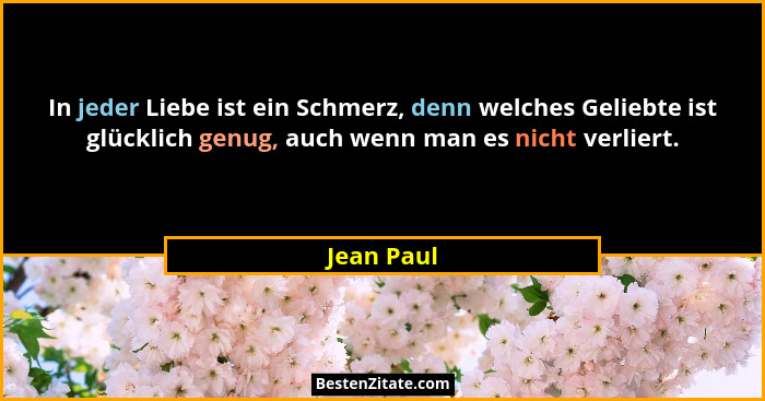 In jeder Liebe ist ein Schmerz, denn welches Geliebte ist glücklich genug, auch wenn man es nicht verliert.