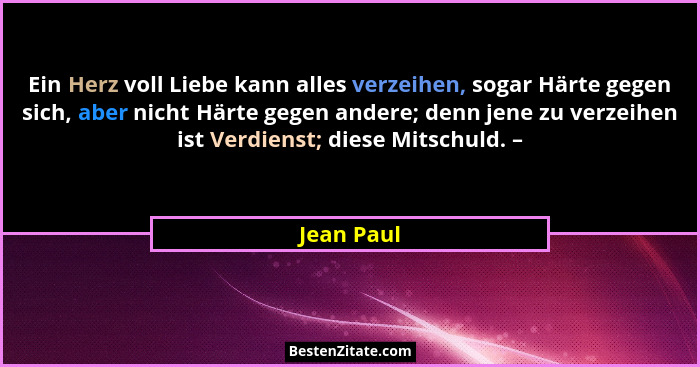 Ein Herz voll Liebe kann alles verzeihen, sogar Härte gegen sich, aber nicht Härte gegen andere; denn jene zu verzeihen ist Verdienst; diese Mitschuld. –