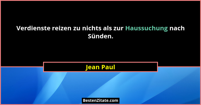 Verdienste reizen zu nichts als zur Haussuchung nach Sünden.