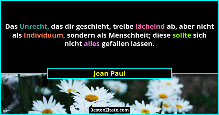 Das Unrecht, das dir geschieht, treibe lächelnd ab, aber nicht als Individuum, sondern als Menschheit; diese sollte sich nicht alles gefallen lassen.