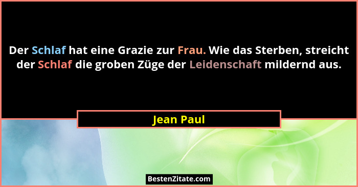 Der Schlaf hat eine Grazie zur Frau. Wie das Sterben, streicht der Schlaf die groben Züge der Leidenschaft mildernd aus.