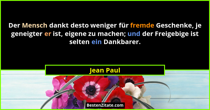 Der Mensch dankt desto weniger für fremde Geschenke, je geneigter er ist, eigene zu machen; und der Freigebige ist selten ein Dankbarer.