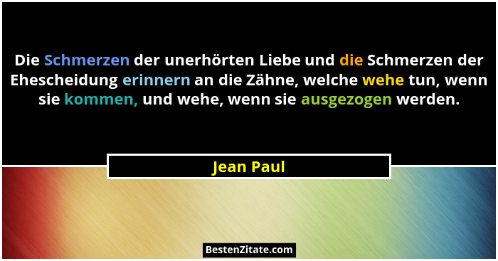 Die Schmerzen der unerhörten Liebe und die Schmerzen der Ehescheidung erinnern an die Zähne, welche wehe tun, wenn sie kommen, und wehe, wenn sie ausgezogen werden.