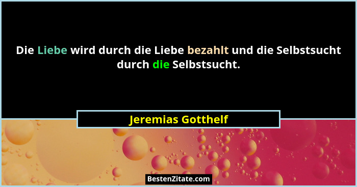 Die Liebe wird durch die Liebe bezahlt und die Selbstsucht durch die Selbstsucht.