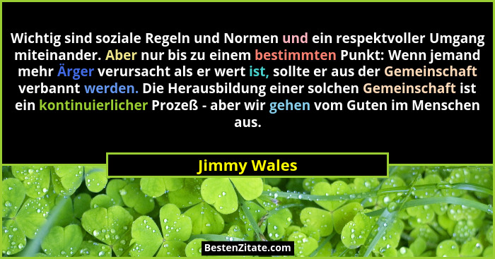 Wichtig sind soziale Regeln und Normen und ein respektvoller Umgang miteinander. Aber nur bis zu einem bestimmten Punkt: Wenn jemand mehr Ärger verursacht als er wert ist, sollte er aus der Gemeinschaft verbannt werden. Die Herausbildung einer solchen Gemeinschaft ist ein kontinuierlicher Prozeß - aber wir gehen vom Guten im Menschen aus.