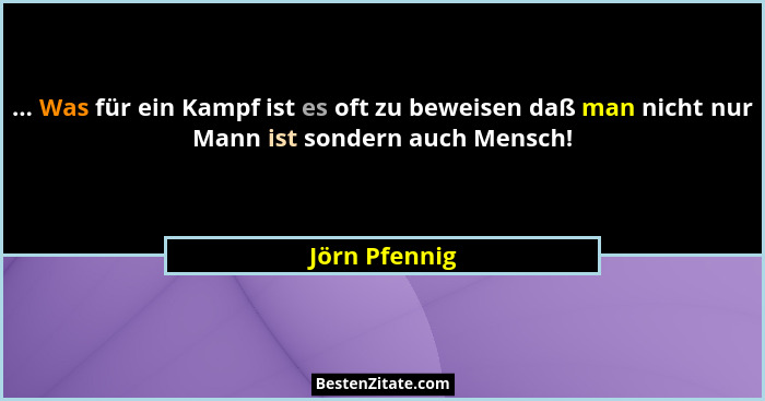 ... Was für ein Kampf ist es oft zu beweisen daß man nicht nur Mann ist sondern auch Mensch!