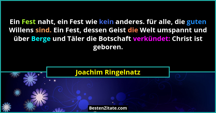 Ein Fest naht, ein Fest wie kein anderes. für alle, die guten Willens sind. Ein Fest, dessen Geist die Welt umspannt und über Berge und Täler die Botschaft verkündet: Christ ist geboren.