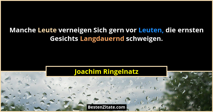 Manche Leute verneigen Sich gern vor Leuten, die ernsten Gesichts Langdauernd schweigen.