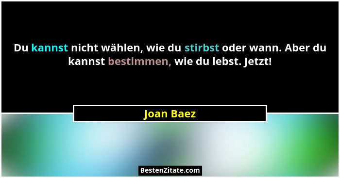 Du kannst nicht wählen, wie du stirbst oder wann. Aber du kannst bestimmen, wie du lebst. Jetzt!