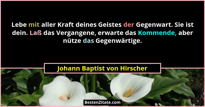 Lebe mit aller Kraft deines Geistes der Gegenwart. Sie ist dein. Laß das Vergangene, erwarte das Kommende, aber nütze das Gegenwärtige.