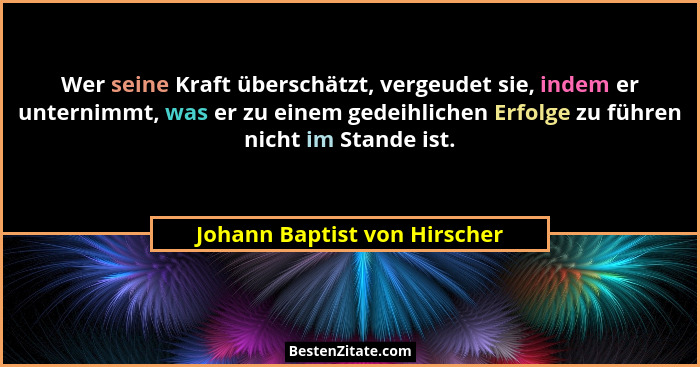 Wer seine Kraft überschätzt, vergeudet sie, indem er unternimmt, was er zu einem gedeihlichen Erfolge zu führen nicht im Stande ist.