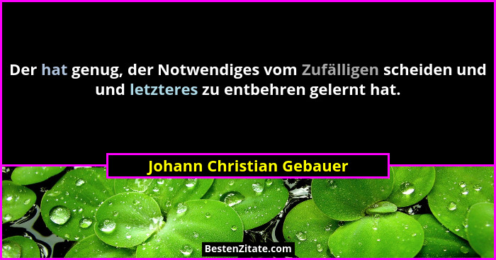Der hat genug, der Notwendiges vom Zufälligen scheiden und und letzteres zu entbehren gelernt hat.