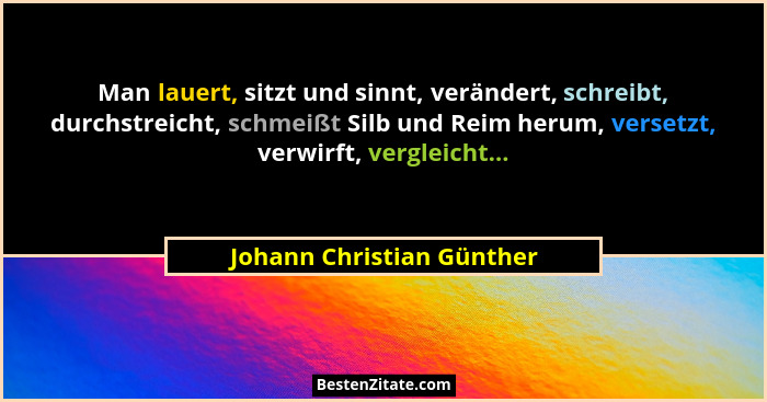 Man lauert, sitzt und sinnt, verändert, schreibt, durchstreicht, schmeißt Silb und Reim herum, versetzt, verwirft, vergleicht...