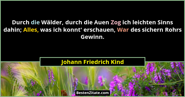 Durch die Wälder, durch die Auen Zog ich leichten Sinns dahin; Alles, was ich konnt' erschauen, War des sichern Rohrs Gewinn.