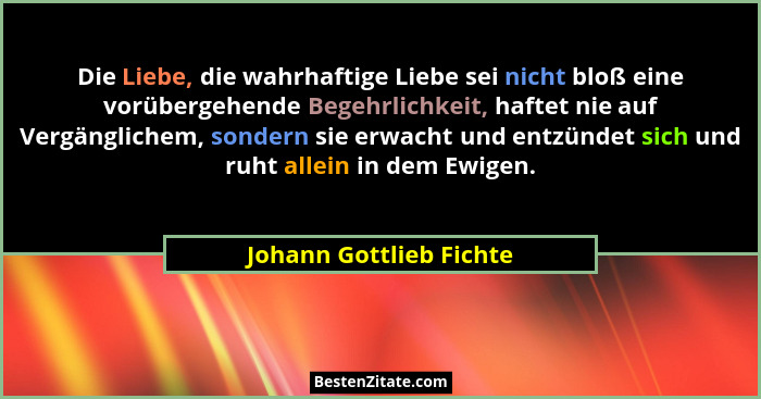 Die Liebe, die wahrhaftige Liebe sei nicht bloß eine vorübergehende Begehrlichkeit, haftet nie auf Vergänglichem, sondern sie erwacht und entzündet sich und ruht allein in dem Ewigen.