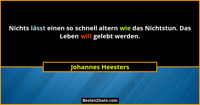 Nichts lässt einen so schnell altern wie das Nichtstun. Das Leben will gelebt werden.