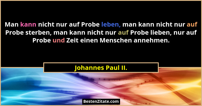 Man kann nicht nur auf Probe leben, man kann nicht nur auf Probe sterben, man kann nicht nur auf Probe lieben, nur auf Probe und Zeit einen Menschen annehmen.