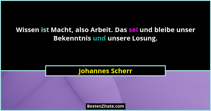 Wissen ist Macht, also Arbeit. Das sei und bleibe unser Bekenntnis und unsere Losung.