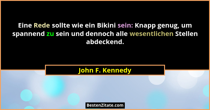 Eine Rede sollte wie ein Bikini sein: Knapp genug, um spannend zu sein und dennoch alle wesentlichen Stellen abdeckend.
