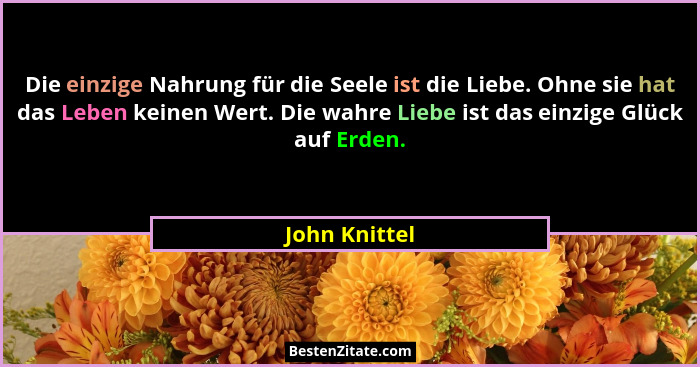 Die einzige Nahrung für die Seele ist die Liebe. Ohne sie hat das Leben keinen Wert. Die wahre Liebe ist das einzige Glück auf Erden.