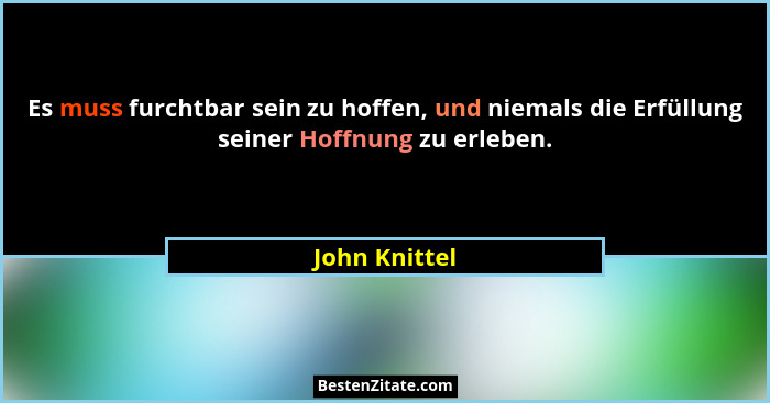 Es muss furchtbar sein zu hoffen, und niemals die Erfüllung seiner Hoffnung zu erleben.