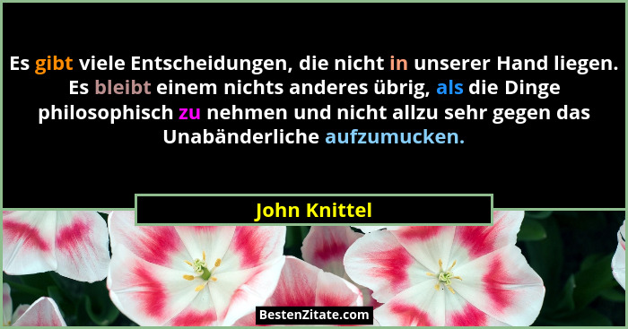 Es gibt viele Entscheidungen, die nicht in unserer Hand liegen. Es bleibt einem nichts anderes übrig, als die Dinge philosophisch zu nehmen und nicht allzu sehr gegen das Unabänderliche aufzumucken.