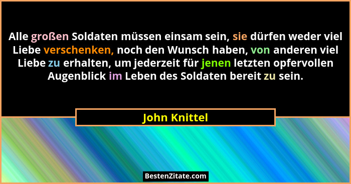 Alle großen Soldaten müssen einsam sein, sie dürfen weder viel Liebe verschenken, noch den Wunsch haben, von anderen viel Liebe zu erhalten, um jederzeit für jenen letzten opfervollen Augenblick im Leben des Soldaten bereit zu sein.